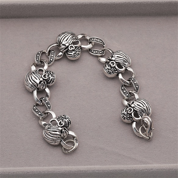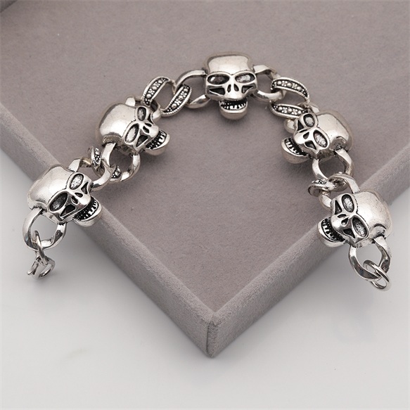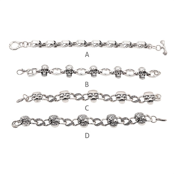 卸売ブレスレット ヴィンテージ風 骸骨モチーフ スカル アンティーク調 メタルチェーンブレスレット 4種(1本)