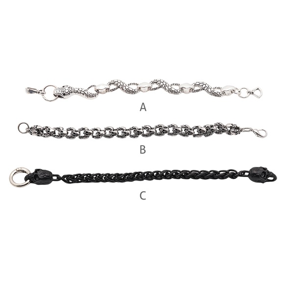 卸売ブレスレット ヴィンテージ風 ヘビ ドクロ アンティーク調 メタルチェーンブレスレット 3種(1本)