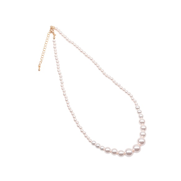 卸売パールネックレス 高品質フェイクパール サイズグラデーション ガラスパール アジャスター付き 長さ約38.5+7cm(1本)