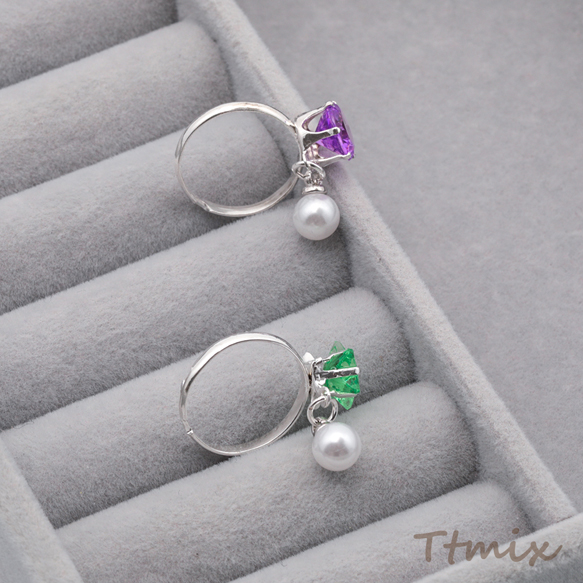 キッズ用リング ランダム パール付き 子ども用 おもちゃの指輪 オープンリング 外径約16mm内径約14mm(1ケース)