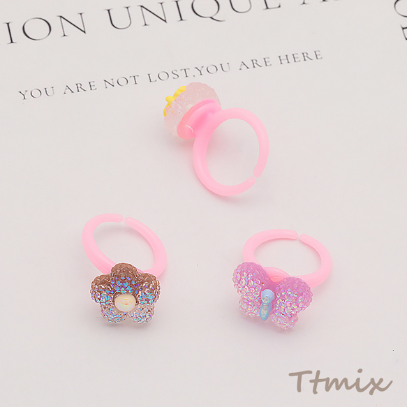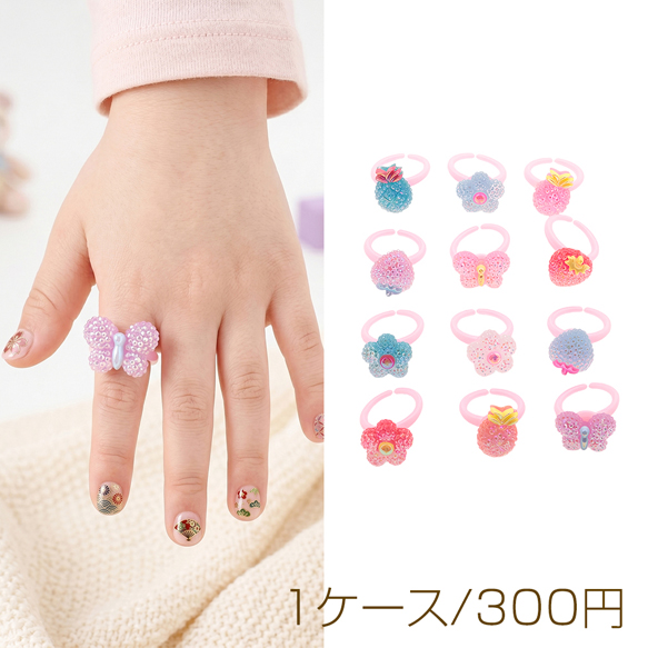 キッズ用リング ランダム キャンディ風 子ども用 おもちゃの指輪 オープンリング 外径約18mm内径約14mm(1ケース)