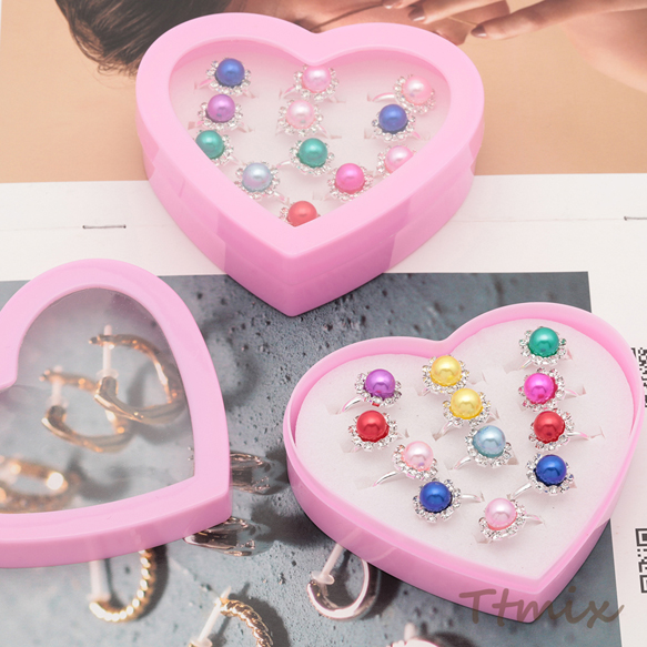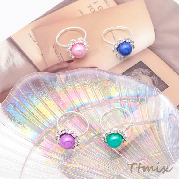 キッズ用リング ランダム カラーパール風 子ども用 おもちゃの指輪 オープンリング 外径約17mm内径約15mm(1ケース)