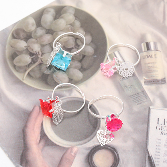 卸売キッズ用リング ランダム チャーム付き 子ども用 おもちゃの指輪 オープンリング 外径約17mm内径約15mm(1ケース)