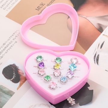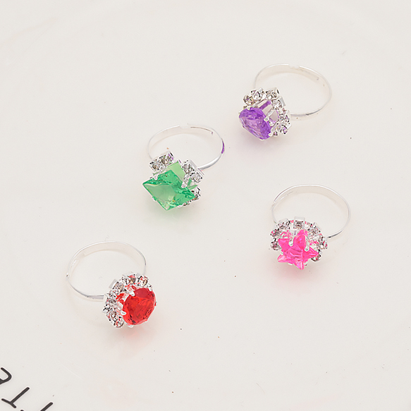 卸売キッズ用リング ランダム ラインストーン 子ども用 おもちゃの指輪 オープンリング 外径約17mm内径約15mm(1ケース)