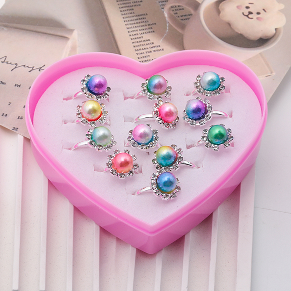 卸売キッズ用リング ランダム パール風 子ども用 おもちゃの指輪 オープンリング 外径約17mm内径約15mm(1ケース)