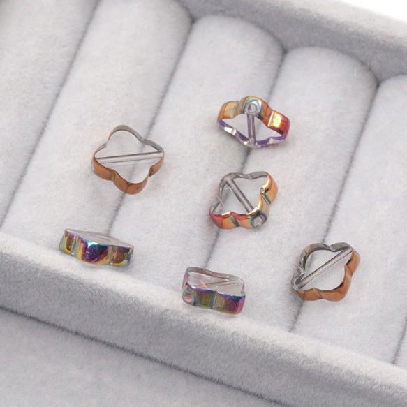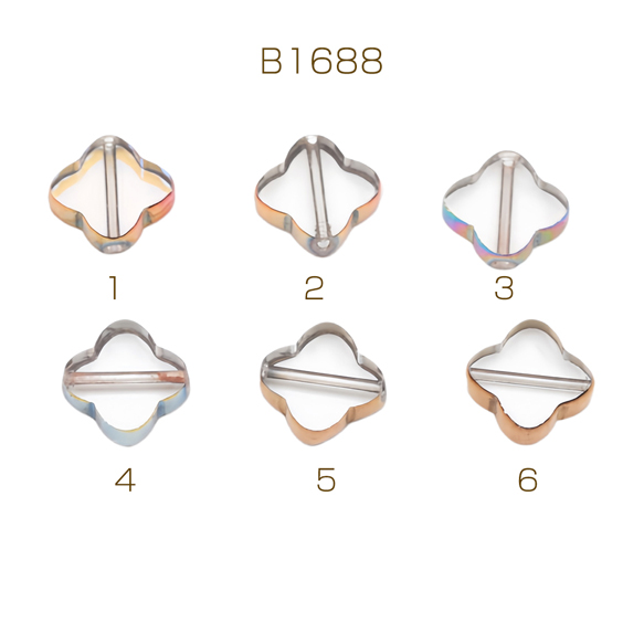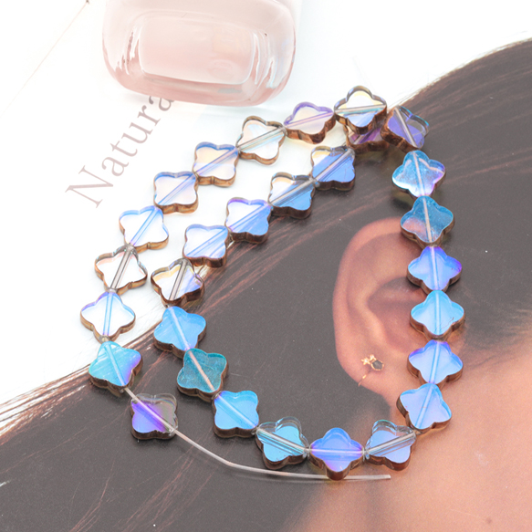 ガラスビーズ 四つ葉のクローバー クリア オーロラメッキの縁 研磨加工 フラットビーズ 約10×10mm(4ヶ)
