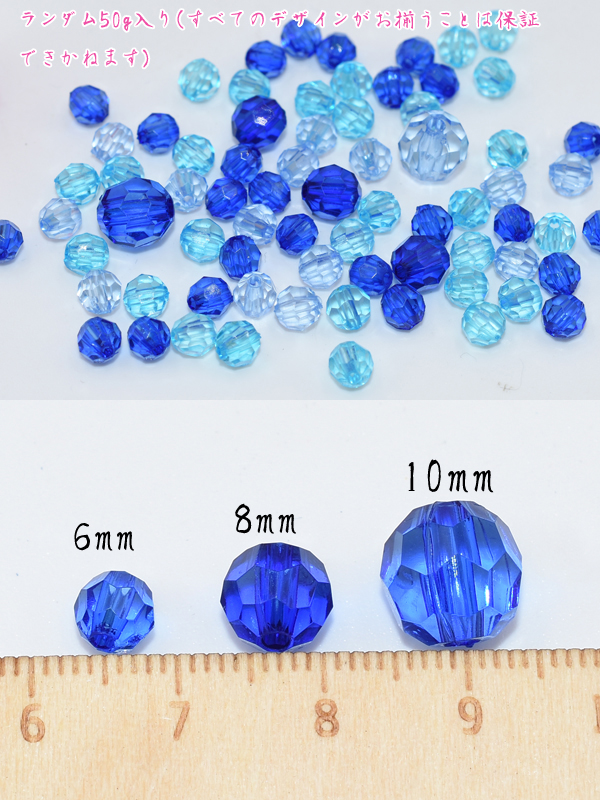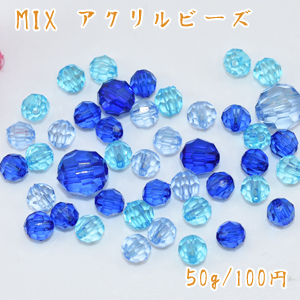 アクリルビーズ ラウンドカット 色&サイズミックス ブルーシリーズ【50g】