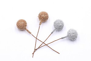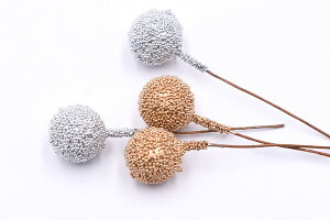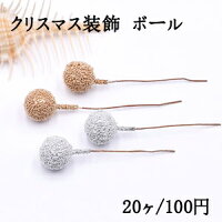 クリスマス スチロールボール+ガラスビーズ ワイヤー付き 14×44mm【20ヶ】