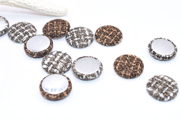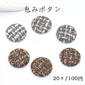 包みボタン 半円 18mm デコパーツ 麻布チェック【20ヶ】