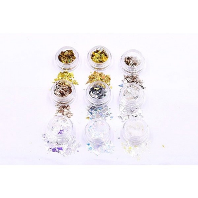 乱切りホログラム MIX ネイルパーツ カラーミックス 9色セット 各2g ケース付き
