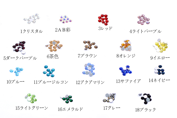 ネイルパーツ ガラスストーン 2mm No.1-18【約1440ヶ】