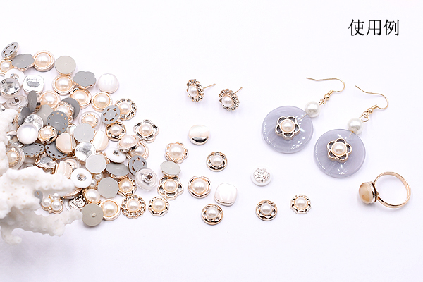 デコパーツ アクリルパーツ 丸型B パール貼り 11mm ホワイト【20ヶ】