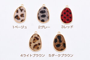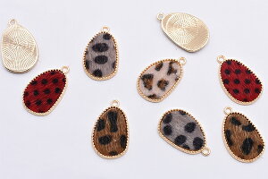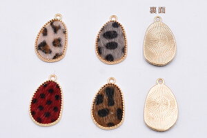 ふわふわファー付き金属チャーム 不規則 1カン レオパード柄【10ヶ】