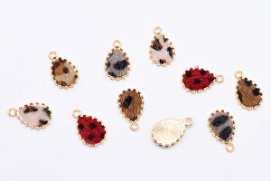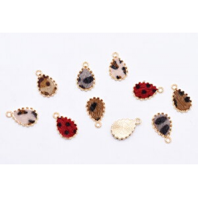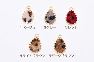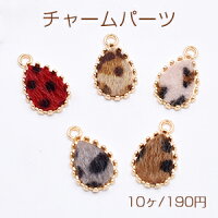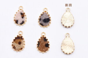 ふわふわファー付き金属チャーム 雫 1カン レオパード柄【10ヶ】