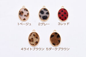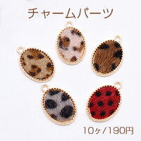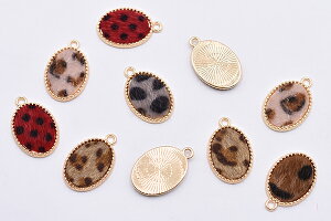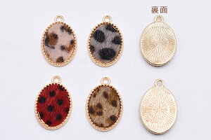 ふわふわファー付き金属チャーム オーバルA 1カン レオパード柄【10ヶ】