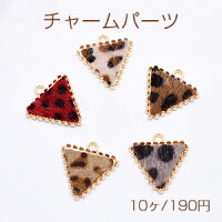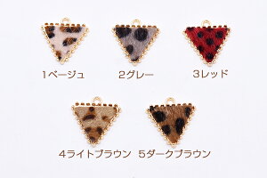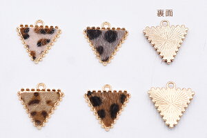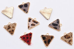 ふわふわファー付き金属チャーム 三角形 1カン レオパード柄【10ヶ】