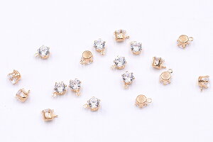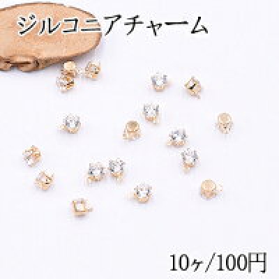 ジルコニアチャーム ラウンド 4×5mm クリスタル/ゴールド【10ヶ】