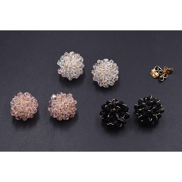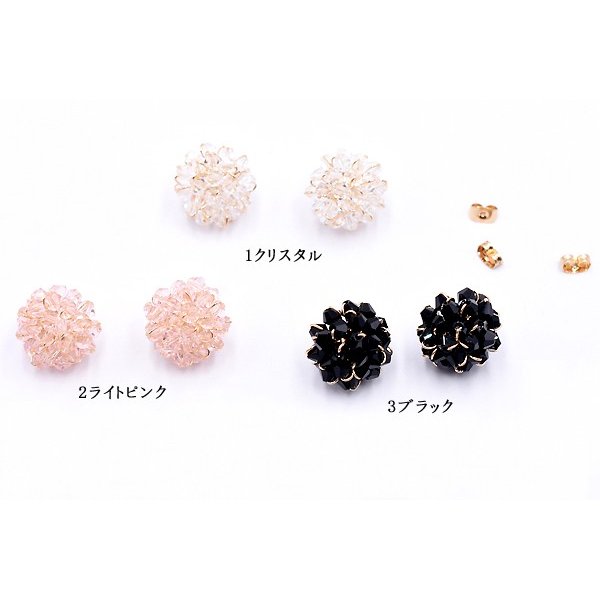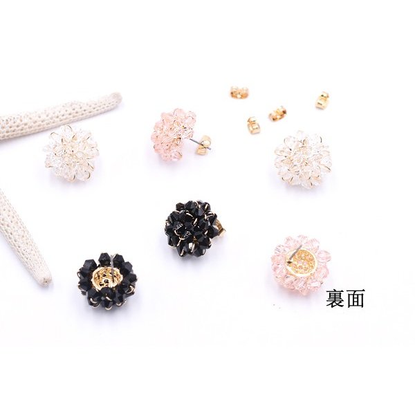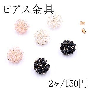 ピアス金具 フラワー ガラスビーズ付 ゴールド【2ヶ】