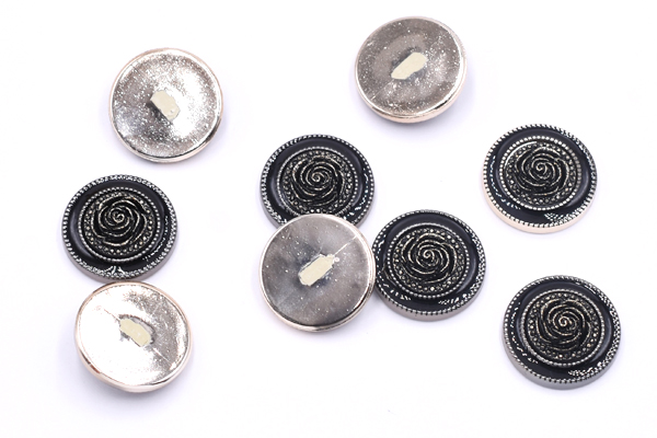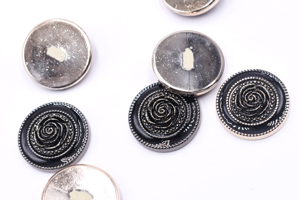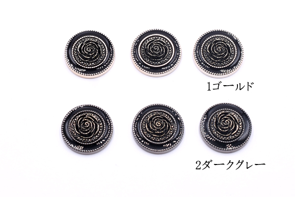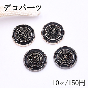デコパーツ ブラックのエポ付丸とローズ 25mm アクリル メタル調【10ヶ】