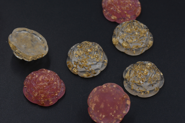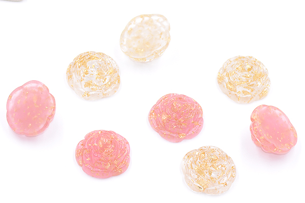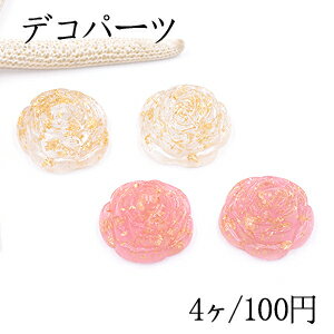 デコパーツ 樹脂パーツ フラワー 13×25mm 金箔入り【4ヶ】