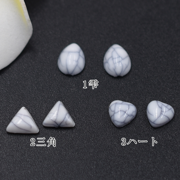 デコパーツ 樹脂カボション 雫&三角&ハート ホワイトターコイズ【20ヶ】