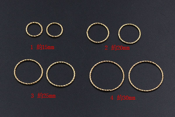 サイズ:【1】約15mm(線経約1.5mm) 【2】約20mm(線経約1.5mm) 【3】約25mm(線経約1.5mm) 【4】約30mm(線経約1.5mm)