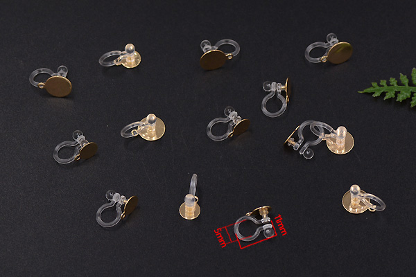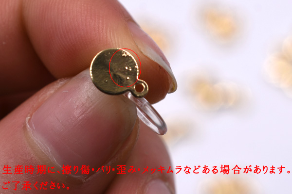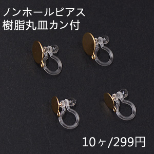 ノンホールピアス 樹脂丸皿カン付 クリア/ゴールド