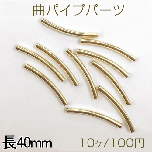 曲パイプパーツ #2 丸革紐通し 紐通し レザー紐通し 3mm幅丸革紐用 10個入り ゴールド 40mm
