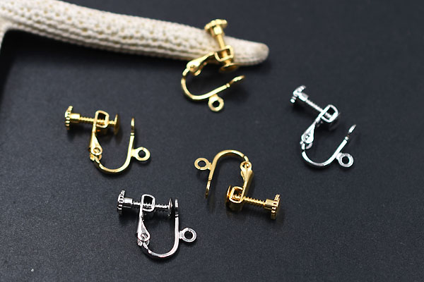 イヤリング金具 ネジバネ丸皿 カン付 13×16mm【2ヶ】