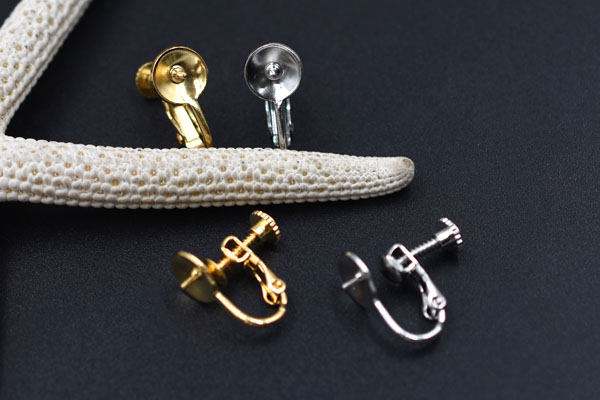 イヤリング金具 ネジバネ芯立ラウンド皿 8mm【2ヶ】