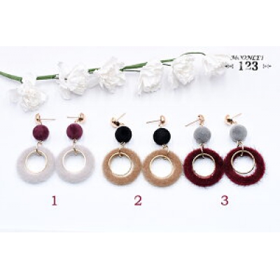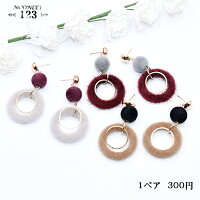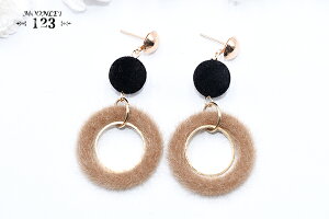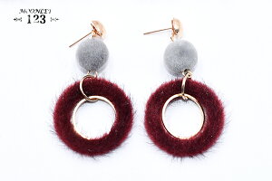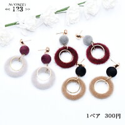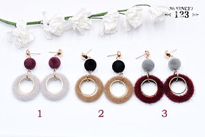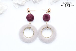ピアス フロッキーボール×丸フレーム×丸フレームファーチャーム