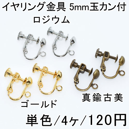 イヤリング金具 5mm玉カン付 単色/4ヶ入り
