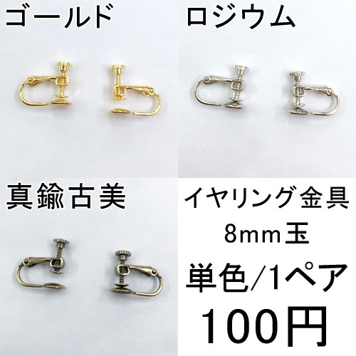 イヤリング/8mm玉/ゴールド/ロジウム/真鍮古美/1ペア/2個入/イヤリング金具/アクセサリーパーツ/金具パーツ/激安/お得!
