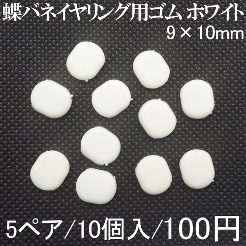 蝶バネイヤリング用ゴム ホワイト 9×10mm 5ペア(10個入)