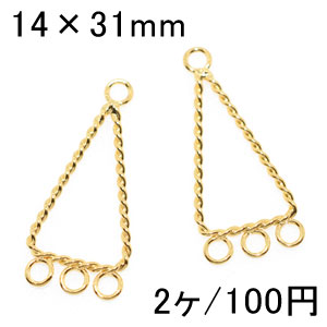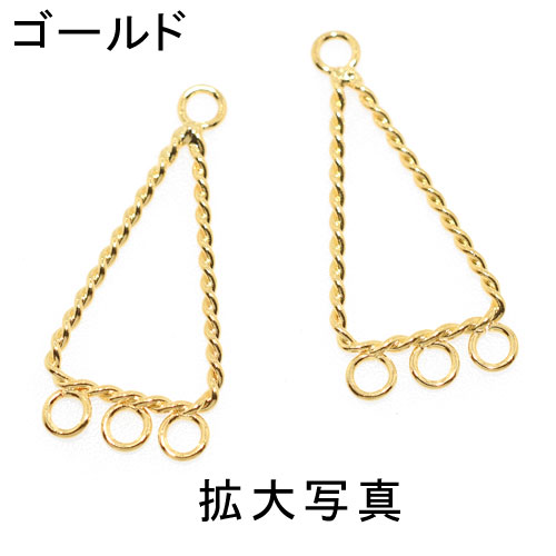 ツイストフープピアス チャーム 4カン付トライアングル ゴールド 14×31mm(2ヶ)