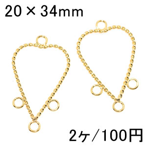 ツイストフープピアス チャーム 4カン付ハート ゴールド 20×34mm(2ヶ)