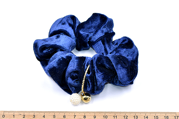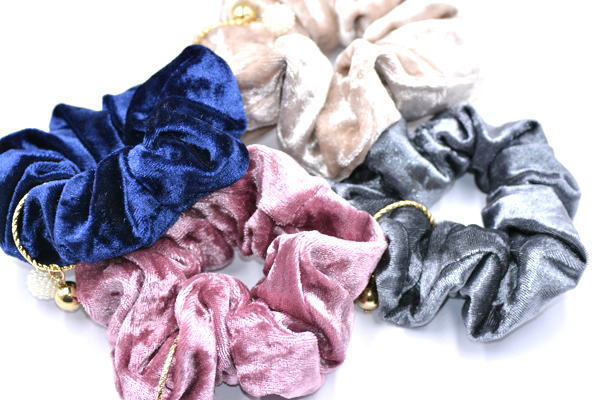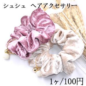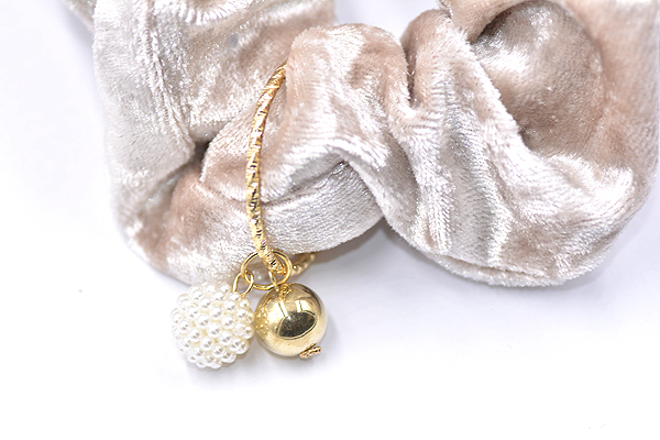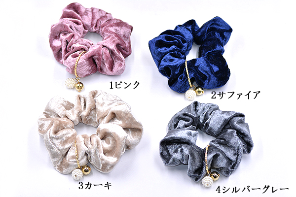 シュシュ チャーム付き ヘアアクセサリー ベロア調 全4色【1ヶ】