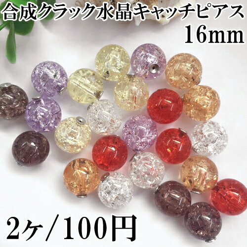 合成クラック水晶キャッチピアス 16mm(2ヶ)