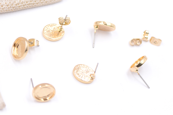 ピアス金具 オーバルのミール皿 10×12mm ゴールド【6ヶ】