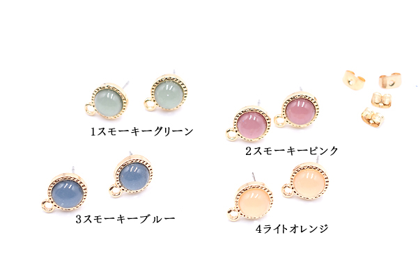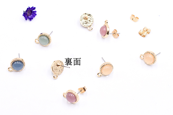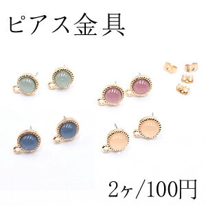 ピアス金具 樹脂丸型A カン付 ゴールド【2ヶ】