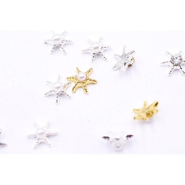 ネイルパーツ メタルパーツ パール&石付六芒星 5×6mm【10ヶ】