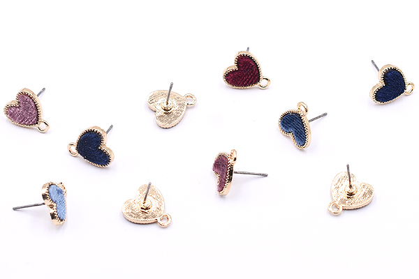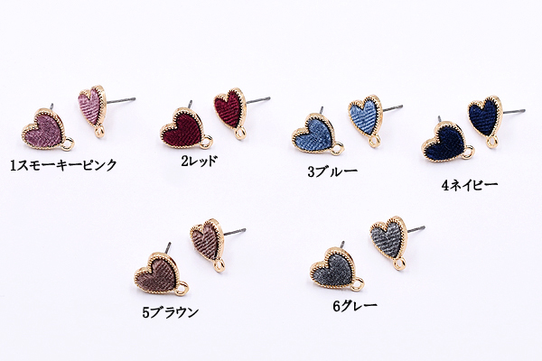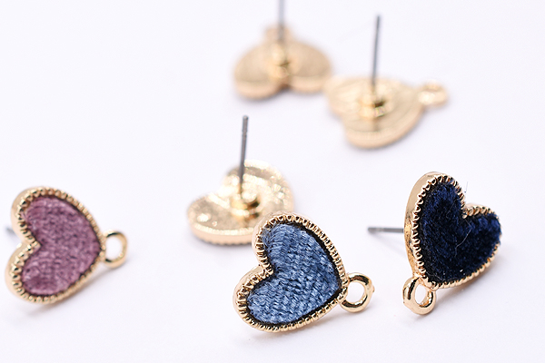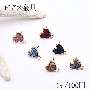 ピアス金具 ハート コーデュロイ貼り カン付 ゴールド【4ヶ】