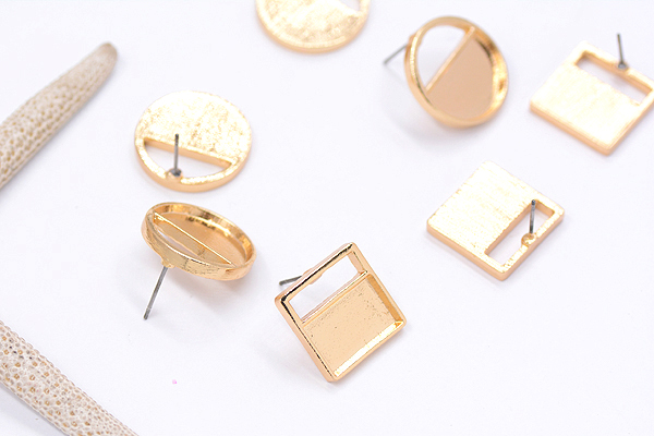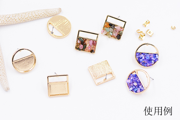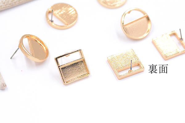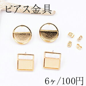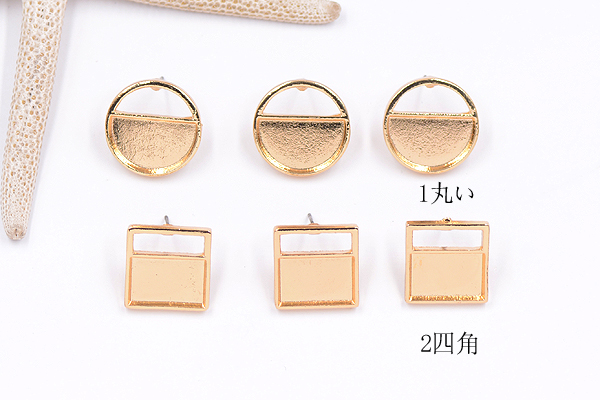 ピアス金具 丸い&四角のミール皿 ゴールド【6ヶ】