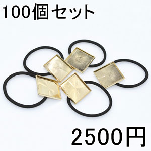 ヘアゴム セッティング土台付き 四角 ゴールド 100個セット ヘアアクセサリー ヘアゴムパーツ メタルパーツ