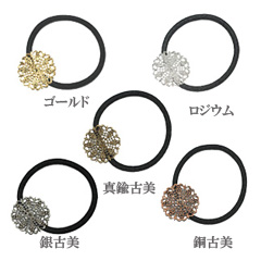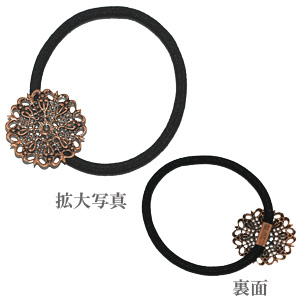 ヘアゴム 透かしフラワー付き ブラック-