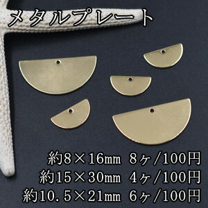 メタルパーツ メタルプレート 半円 1穴 ゴールド