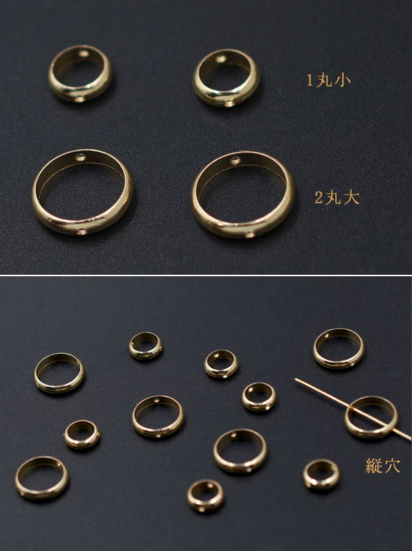 フレームパーツ 丸 8mm&12mm 2つの穴 チャームパーツ ゴールド【20ヶ】