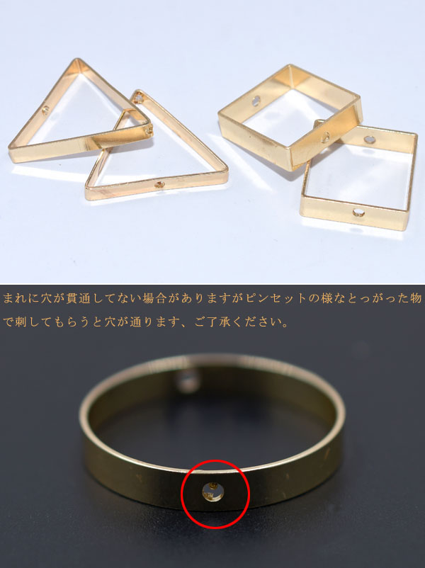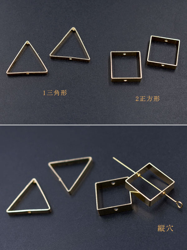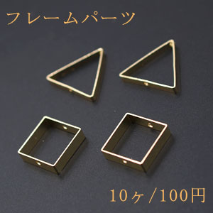 フレームパーツ 三角形&正方形 2つの穴 チャームパーツ ゴールド【10ヶ】