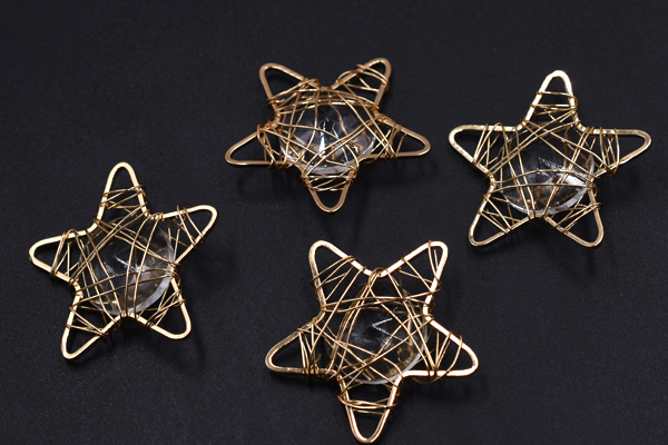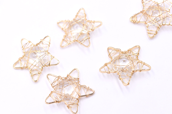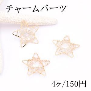 チャームパーツ 星型 クリアストーン入り 28×28mm ゴールド【4ヶ】