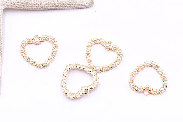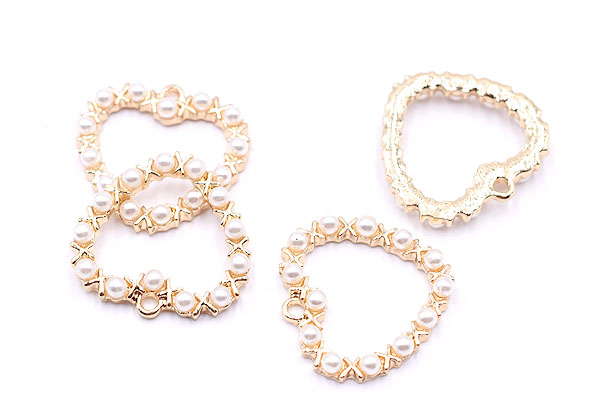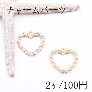 チャームパーツ ハート パール付 1カン ゴールド【2ヶ】